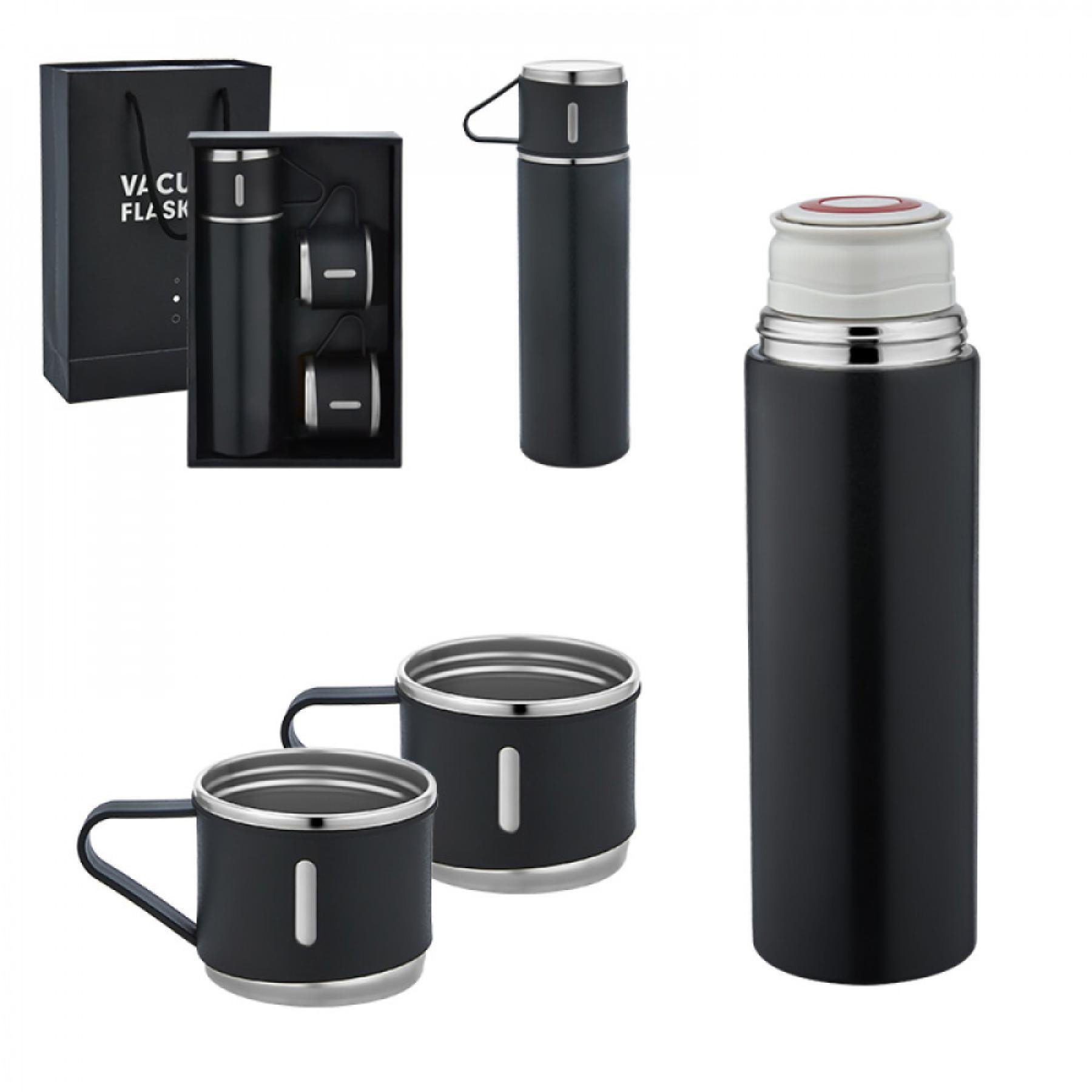 *1000 ML *İç 304 Çelik *Dış 201 Çelik *Çift Bardaklı Siyah PP Kapak *Siyah Plastik Sap ve Boyun İpli *Baskı: Lazer